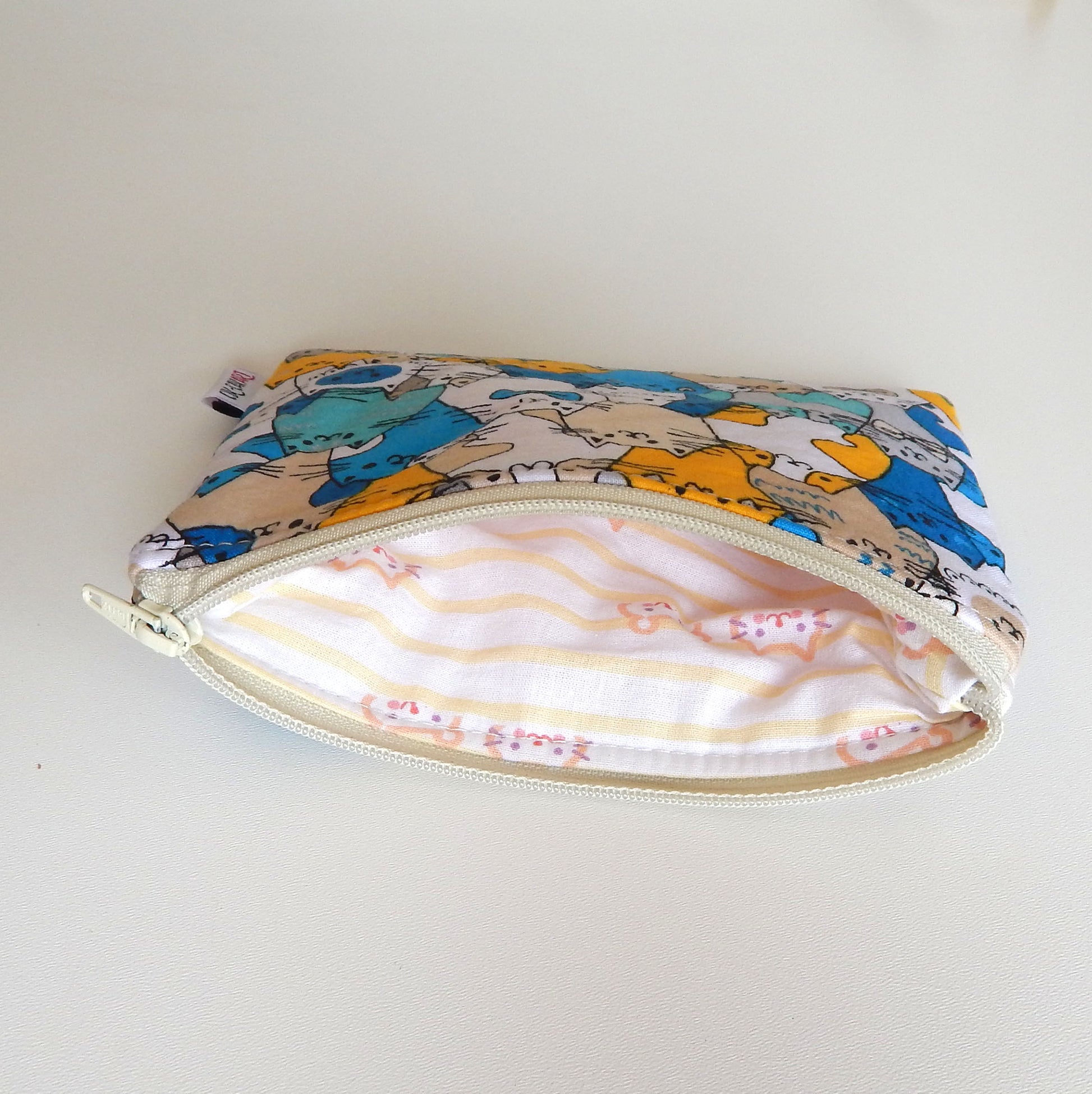 This adorable cat-print cosmetic bag is both stylish and practical, perfect for keeping essentials like menstrual pads, makeup, or small toiletries neatly stored. Made from high-quality cotton canvas, this handmade pouch is compact yet spacious enough to fit comfortably in a handbag.
