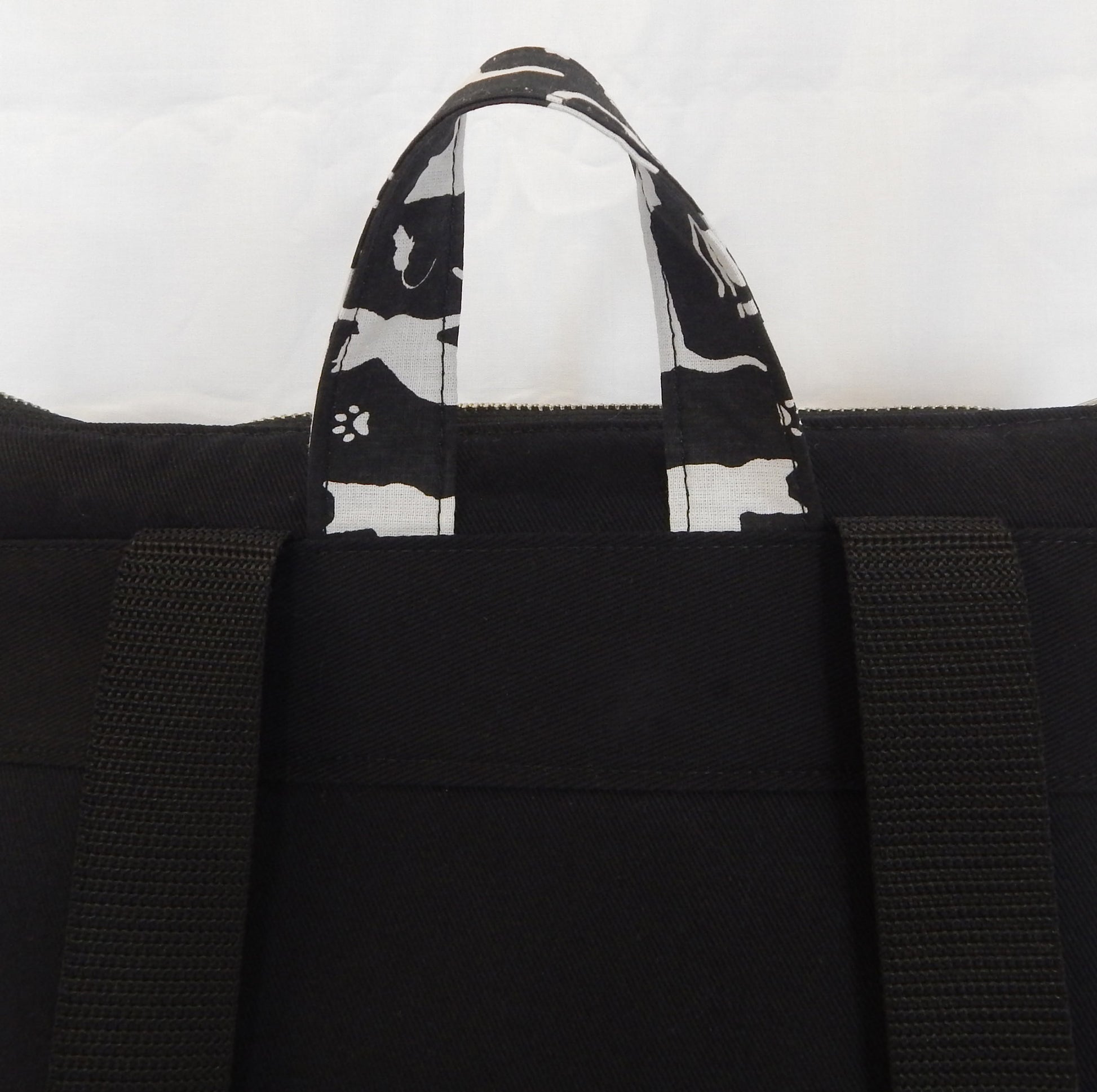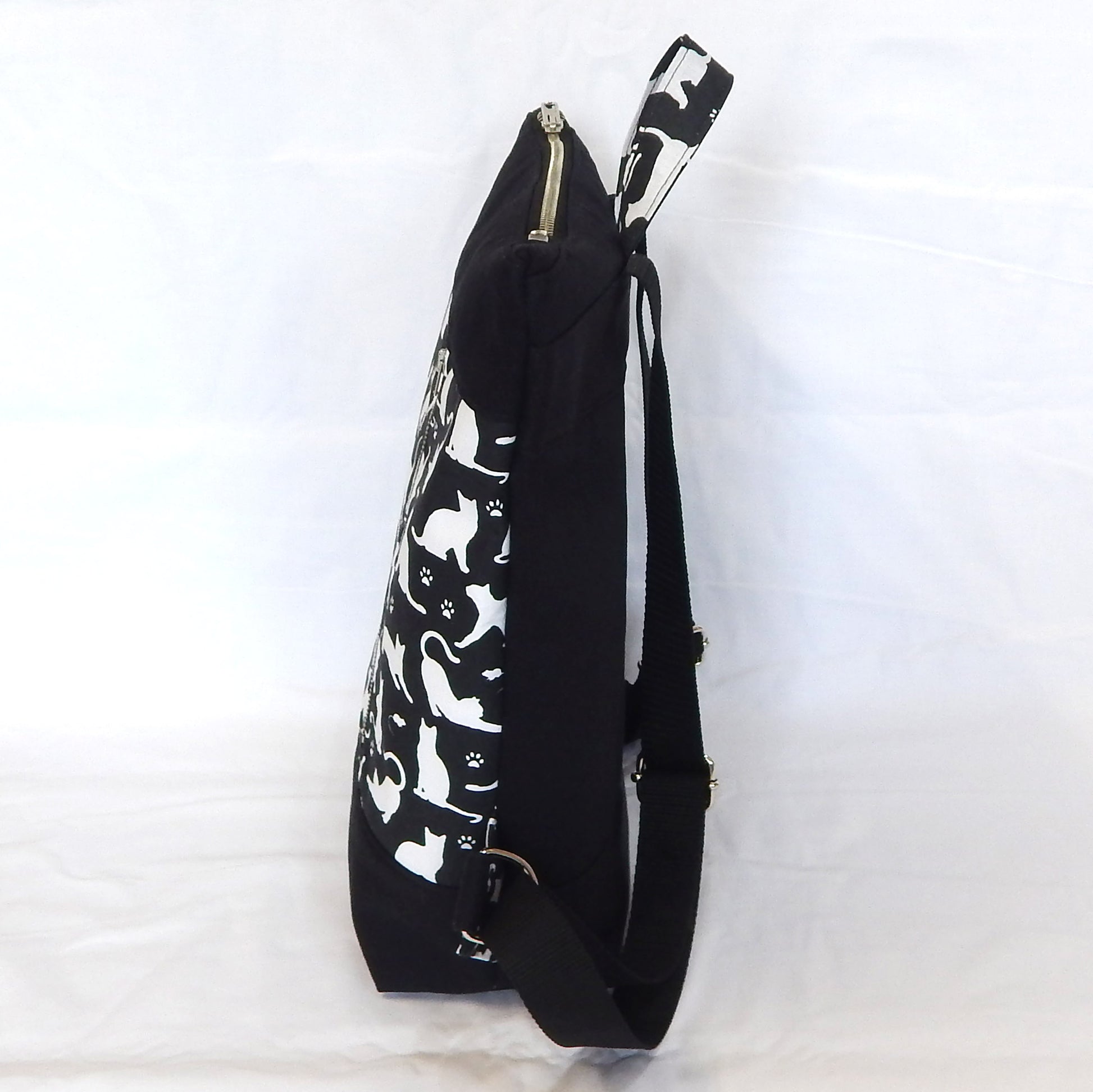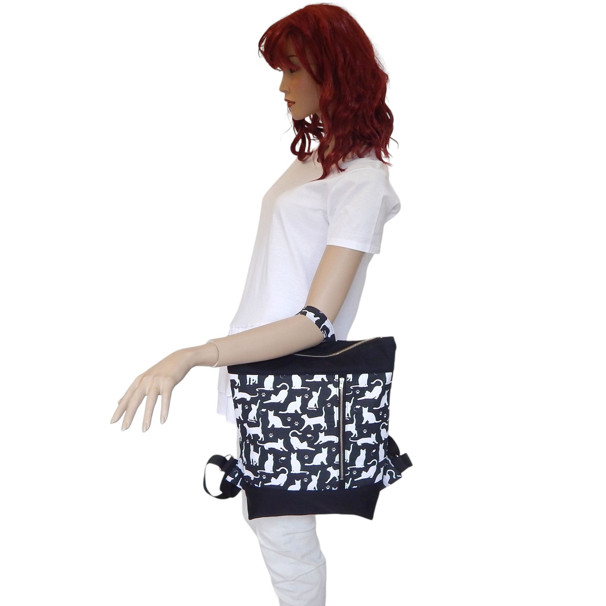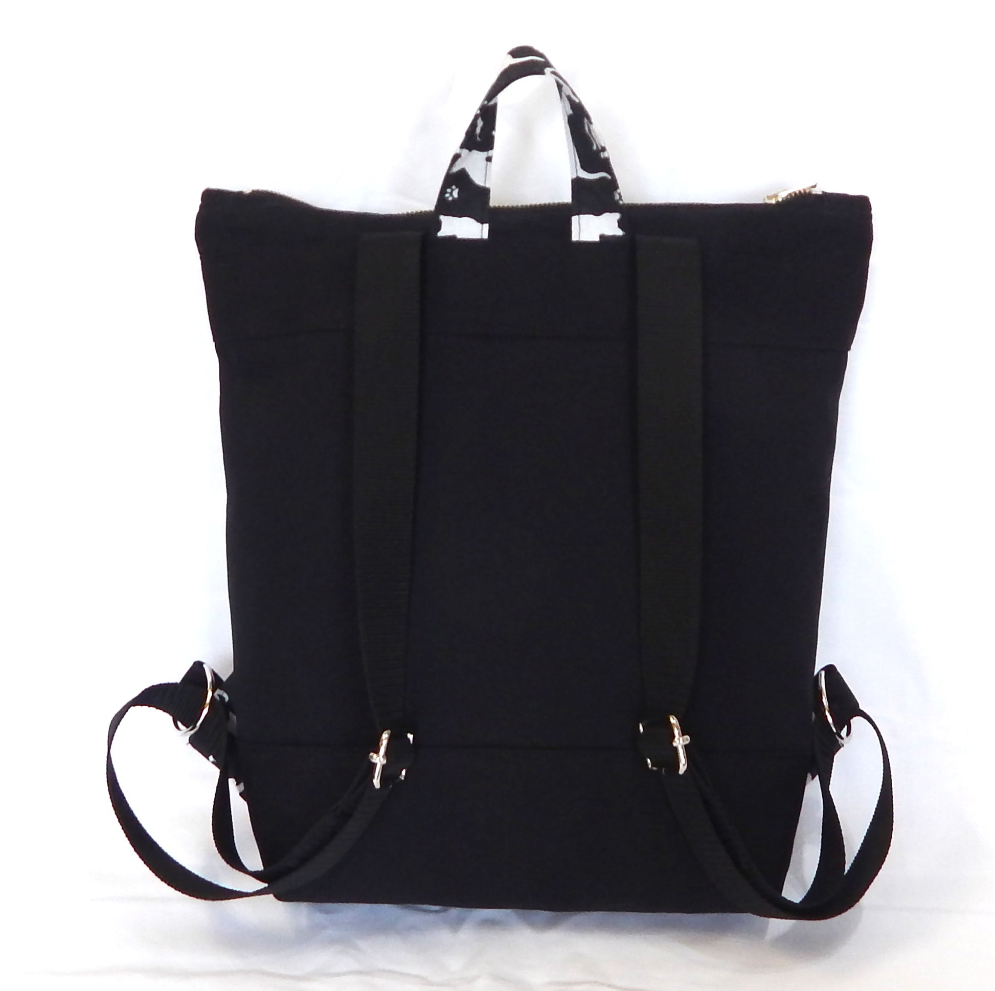 🐈⬛ About: Dive into the world of meow fashion with this handmade Black Canvas Backpack. Crafted from high-quality black cotton twill and adorned with a striking cat print on medium-weight cotton canvas, this backpack seamlessly blends durability and style. The vichy black-white cotton lining adds a sophisticated touch, while the silver-tone metal zipper, metal hooks, and D-rings ensure long-lasting functionality. Designed for everyday use, this backpack offers ample space for A4 files, notebooks, books, and personal essentials, making it both practical and stylish.