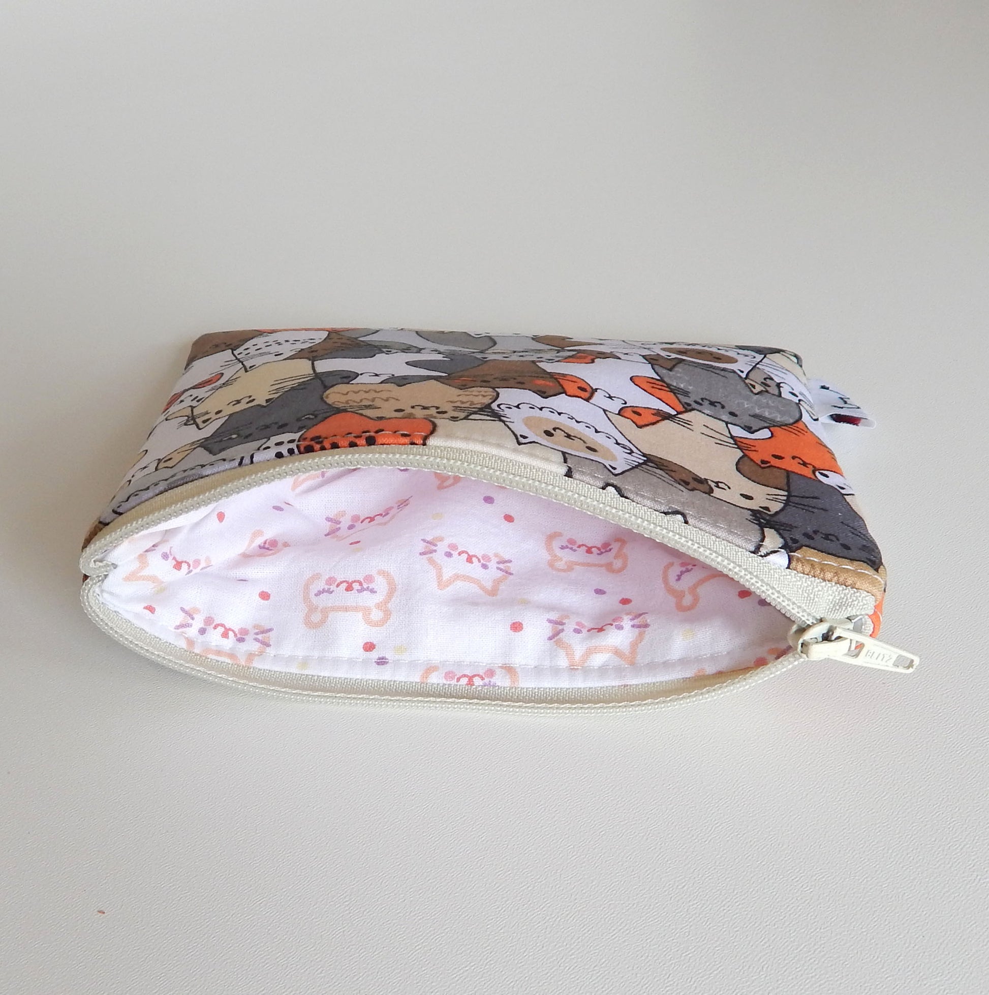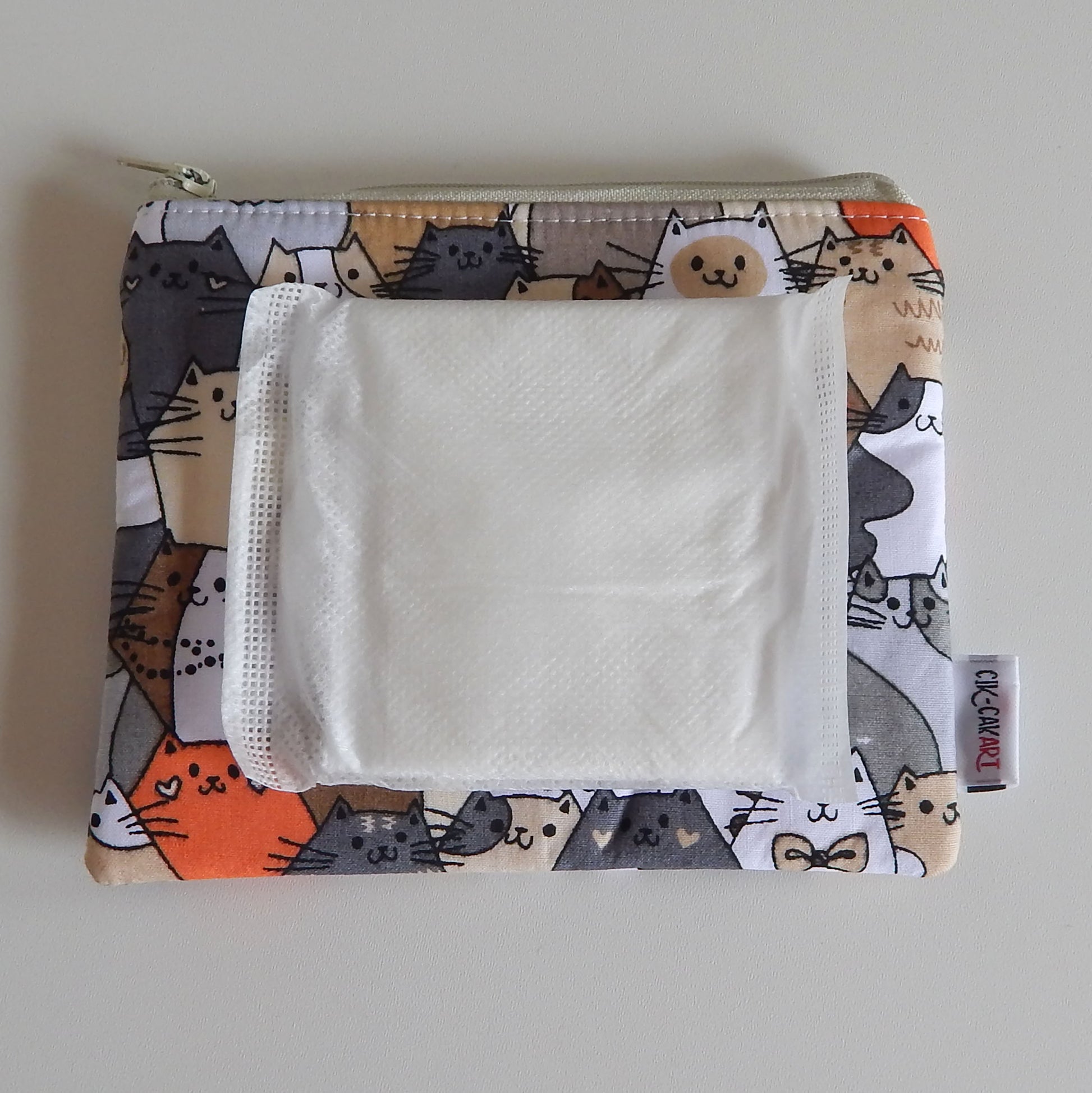 This adorable cat-print cosmetic bag is both stylish and practical, perfect for keeping essentials like menstrual pads, makeup, or small toiletries neatly stored. Made from high-quality cotton canvas, this handmade pouch is compact yet spacious enough to fit comfortably in a handbag.