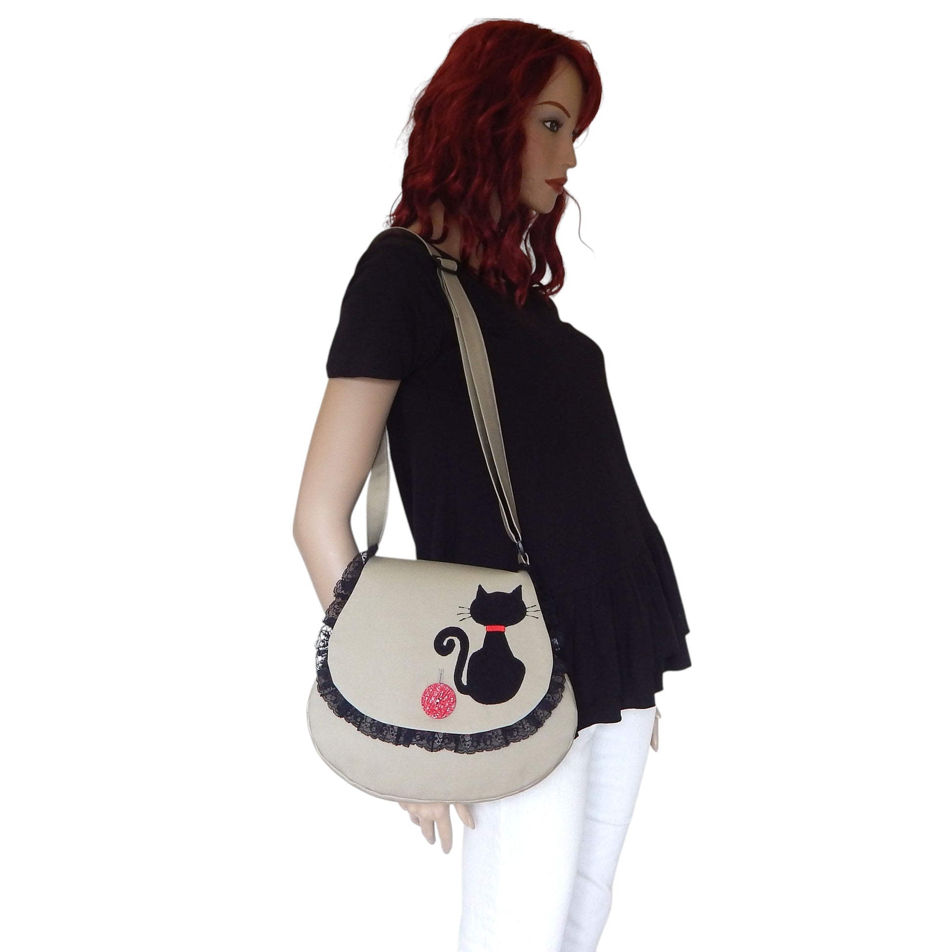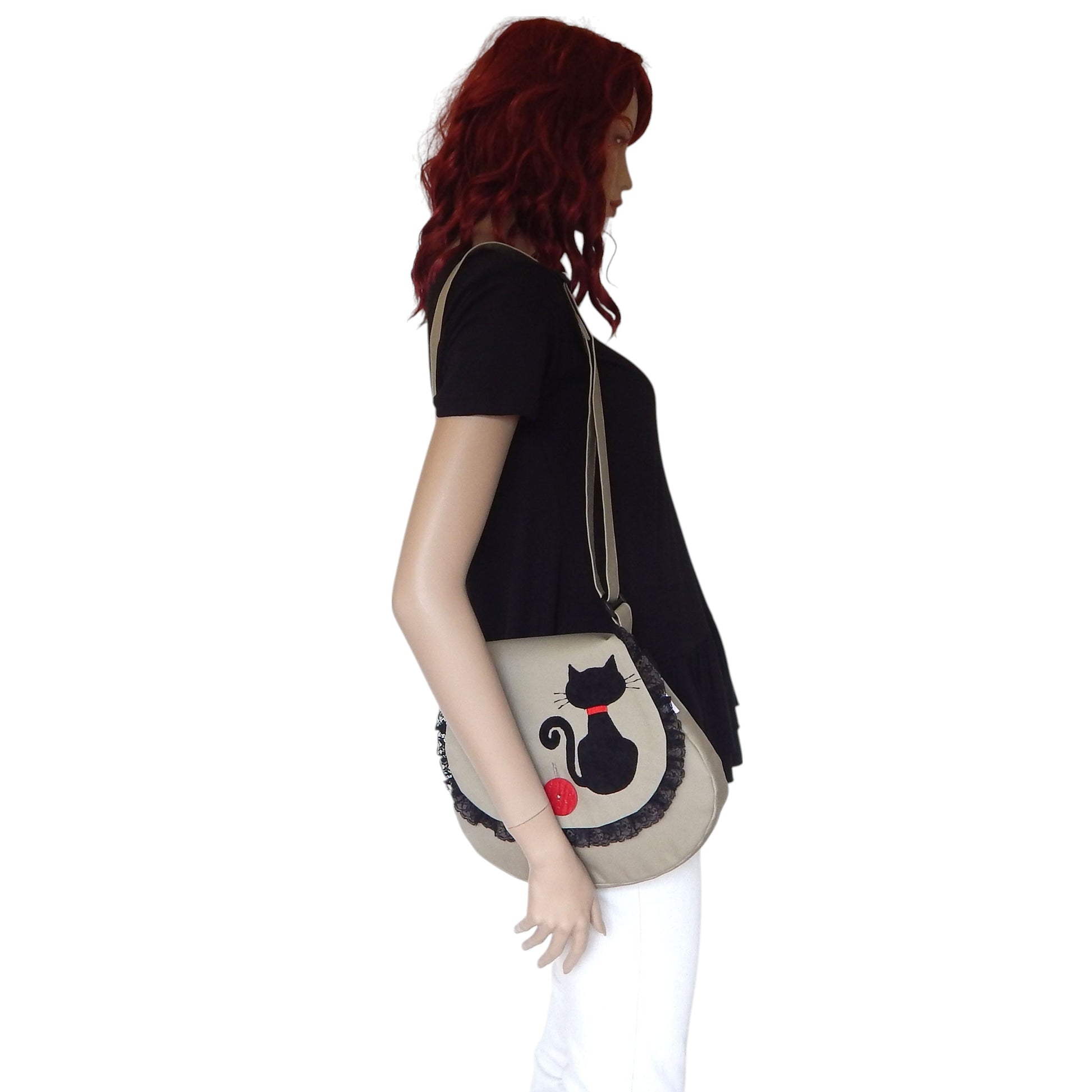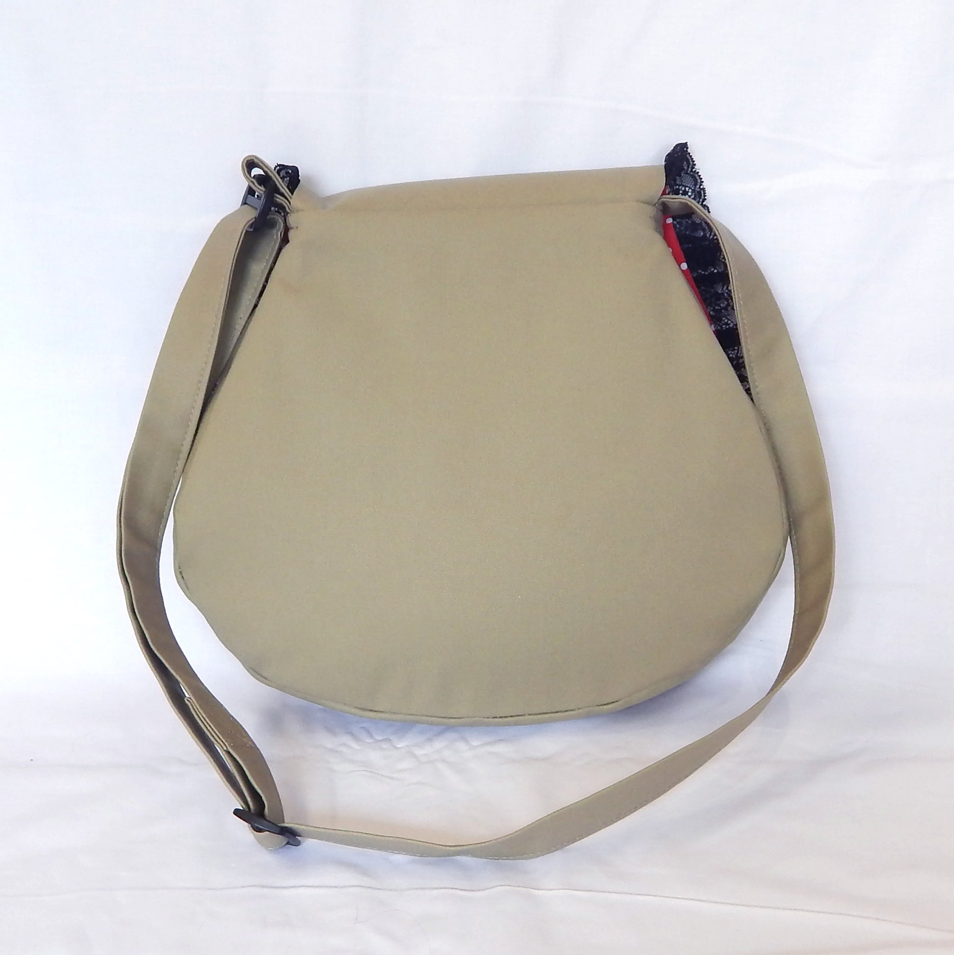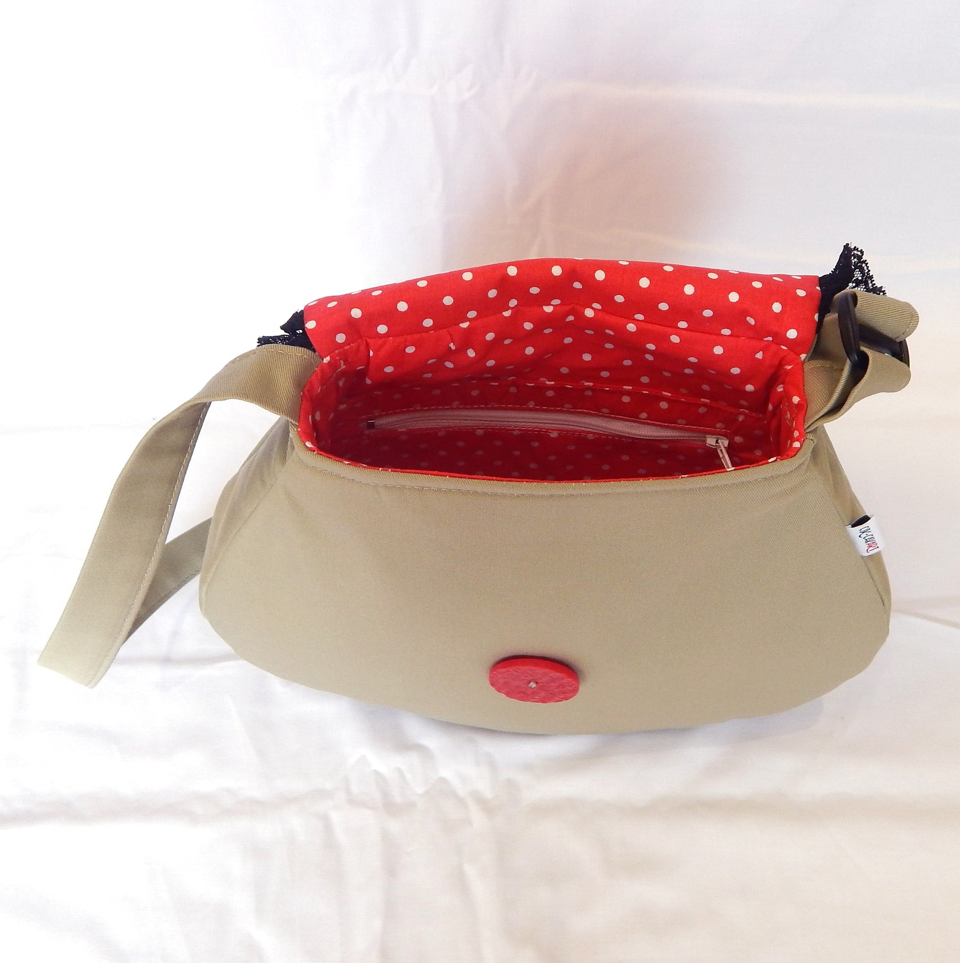 Tear shape crossbody bag made of beige color twill, mix polyester-cotton.
